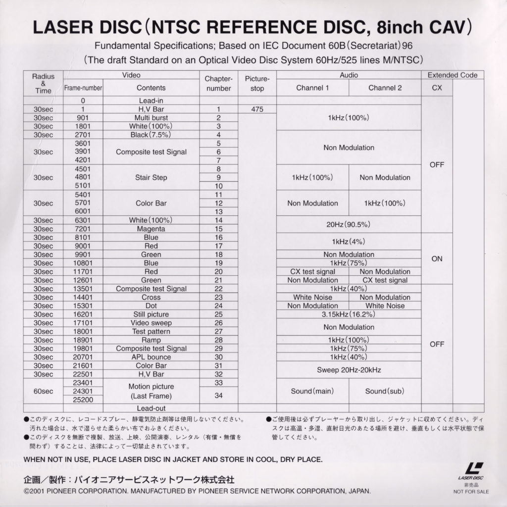 The Pioneer GGV1069 was the last NTSC test and calibration LaserDisc produced by Pioneer and is required in order to service NTSC and NTSC/PAL players. The GGV1069 in an 8 inch reference disc which, at the time of writing, is still available to purchase.