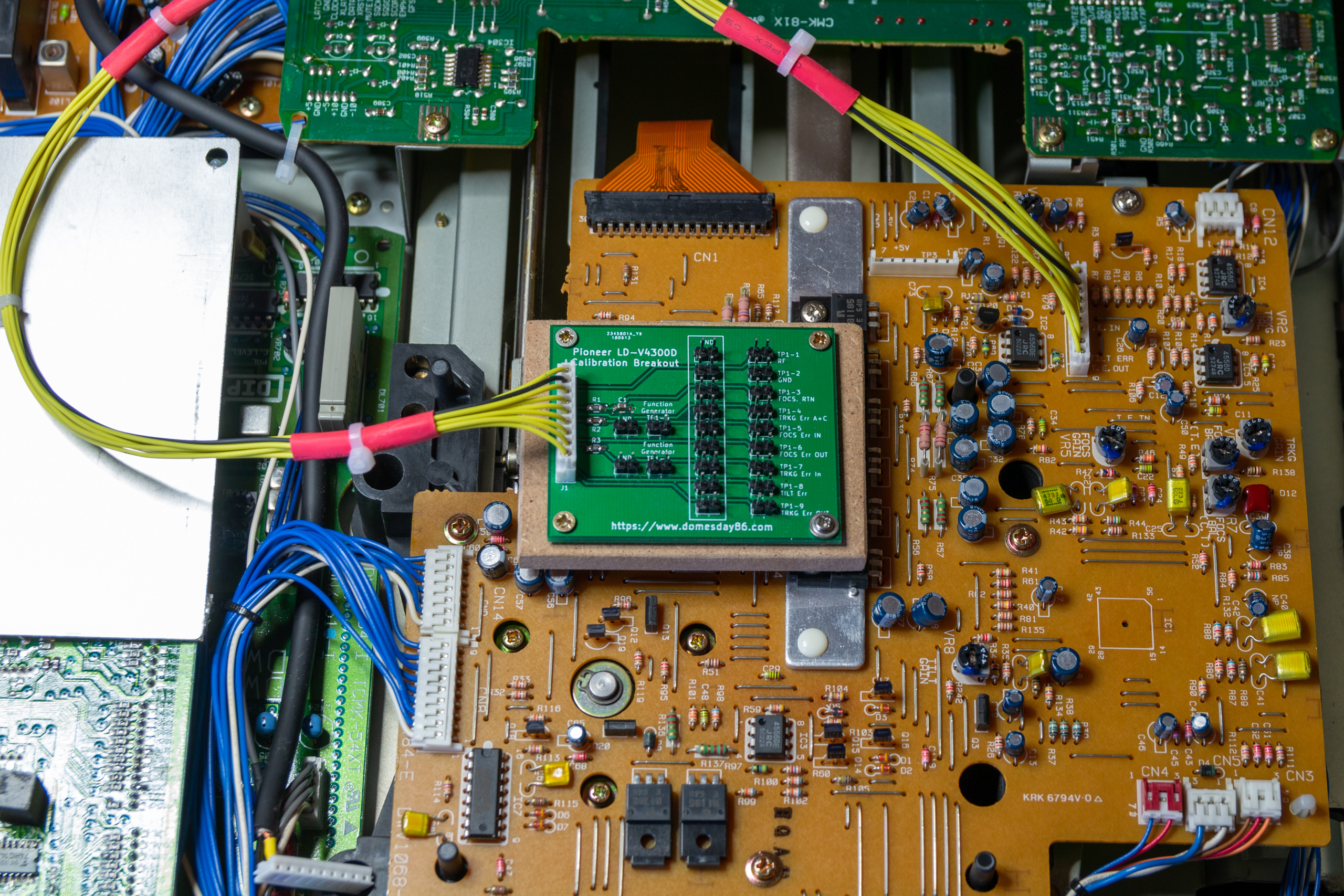 There is, of course, no guarantee that the calibration steps suggested here are correct. You should note that attempting to calibrate a LaserDisc player can not only cause the player to stop functioning, it can also damage the player (and even you, since the 240V/110V voltages in the exposed power supply are potentially deadly). Proceed with calibration at your own risk and ensure you have studied the details of each step (and understood the requirements) before attempting on a player. If you are unsure, don’t have the required equipment or don’t have the required electronics skills – do not attempt to calibrate your player.
