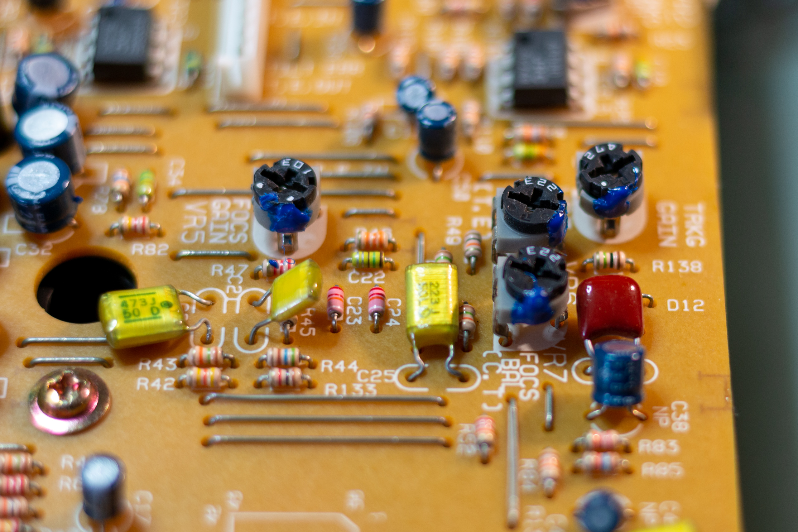 Once calibration is complete all adjustment points and potentiometers should be fixed in place to prevent vibration and movement disturbing the calibration (especially if the LaserDisc player is to be transported).