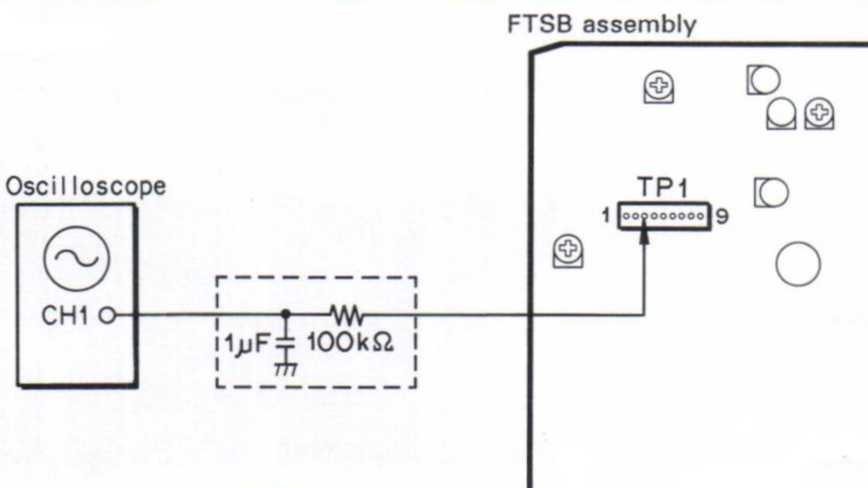 Connect channel 1 of the oscilloscope to TP1-9 (TRKG error). Set channel 1 to DC 500 mV/div (vertical) with 5 mS/div (horizontal).