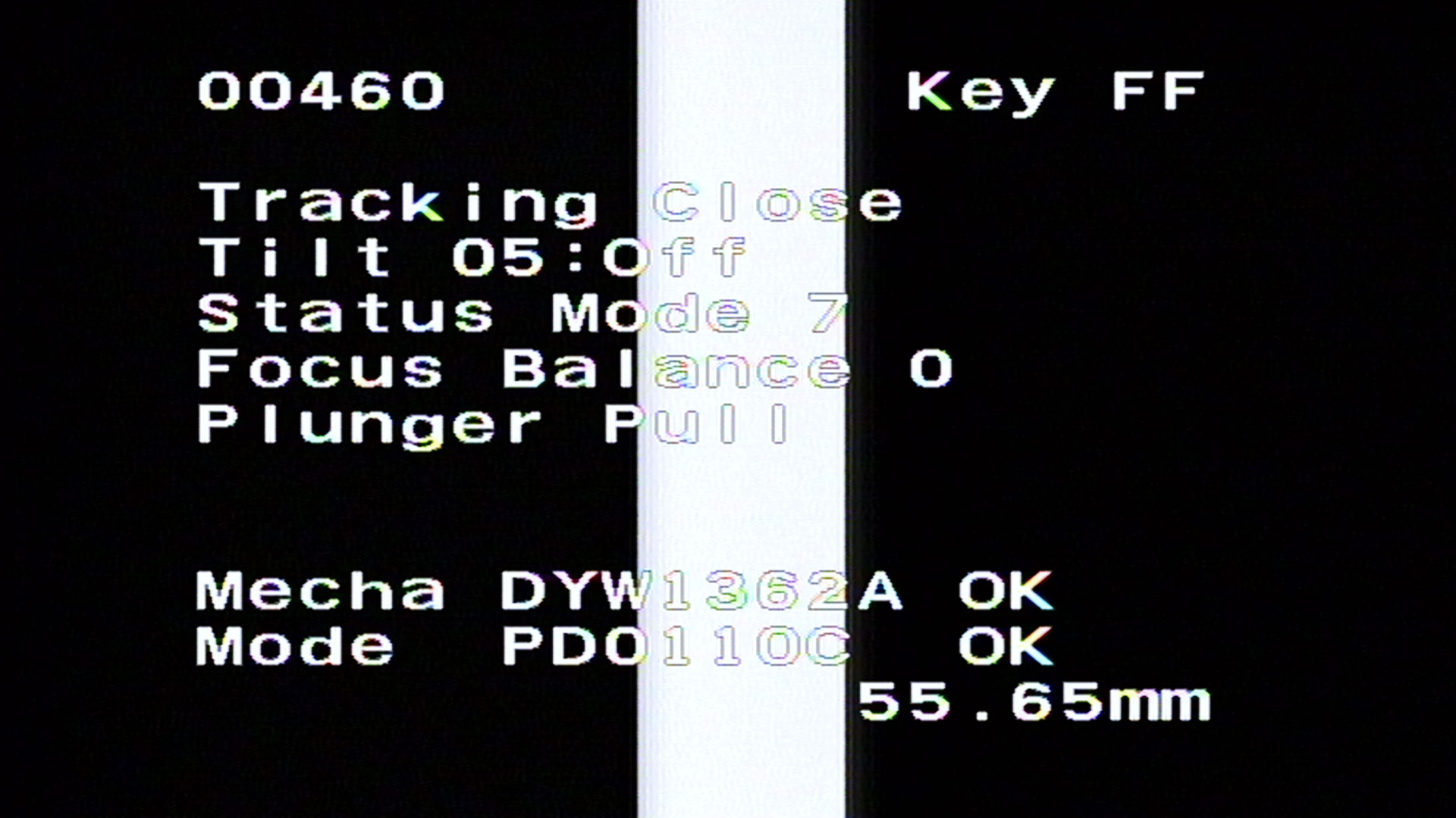In test mode, press the play button on the front-panel to start the disc playing and move the deck to around frame 16,000 (with the tracking servo open). Set the focus balance to ‘1’ (using the MULTI-REV on the CU-V113A). Lock the optical deck using the plunger (press the red power button on the RMC).