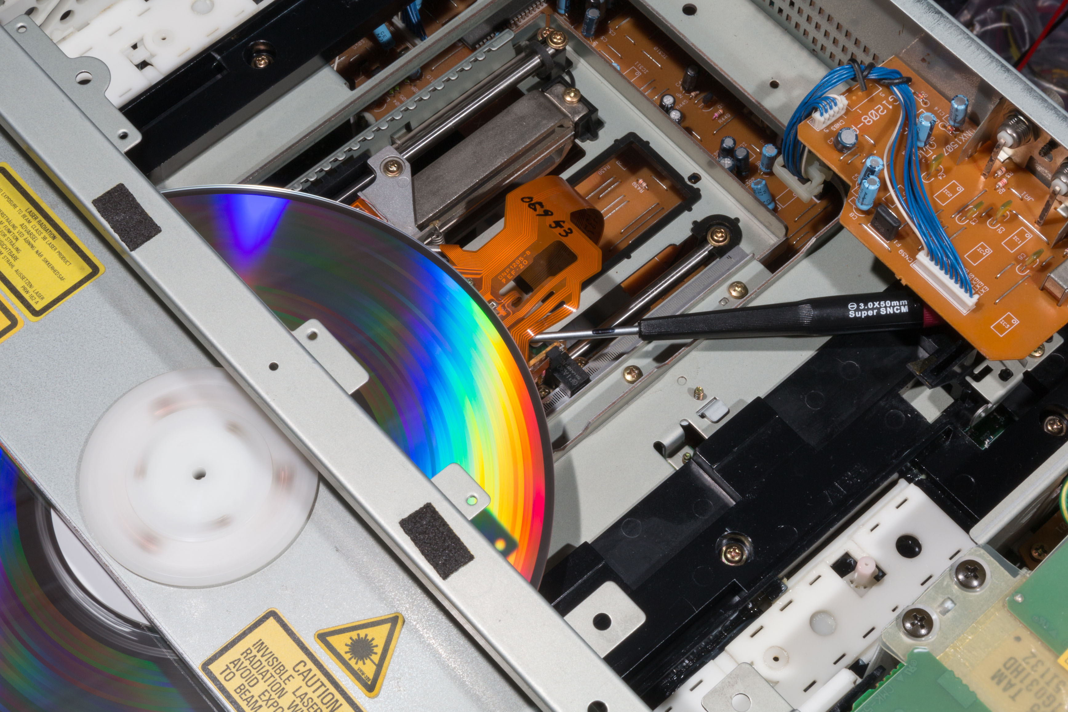 The laser in a LaserDisc player produces an intense but invisible beam of infrared light. Under no circumstances should you stare directly into the lens of the player whilst it is powered up. Always ensure the test disc is in place when the player is powered up and avoid standing over the player looking directly down at it. Please ensure you study the dangers of working with lasers before attempting to open a LaserDisc player or attempting calibration.