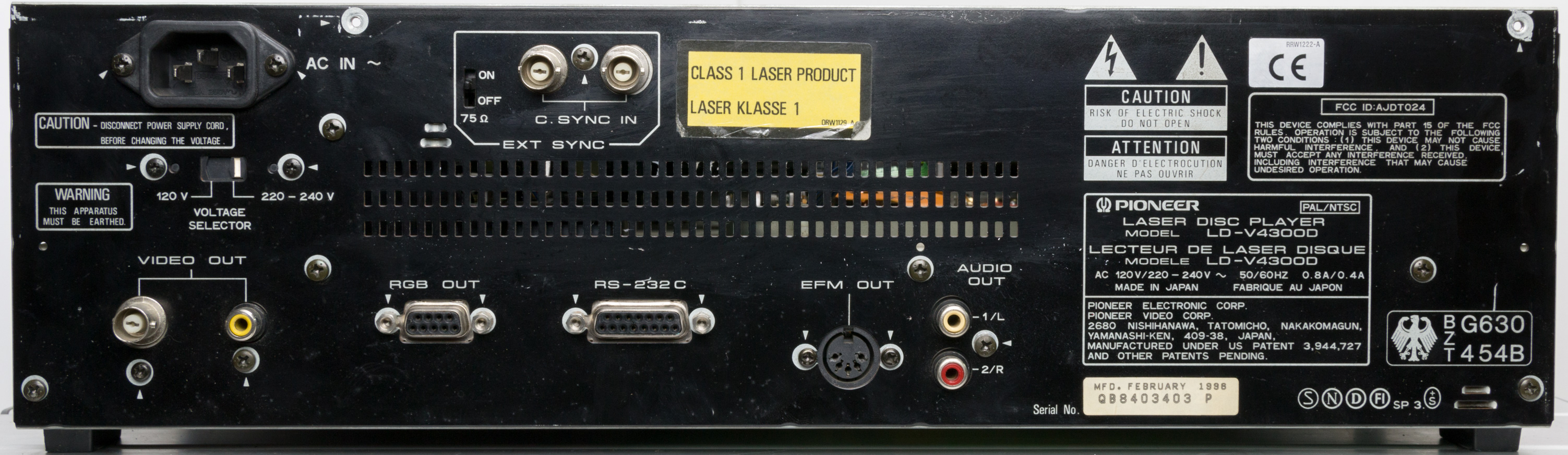 - Relatively modern player - Most players were constructed around 1998 making the LD-V4300D fairly modern by laserdisc standards