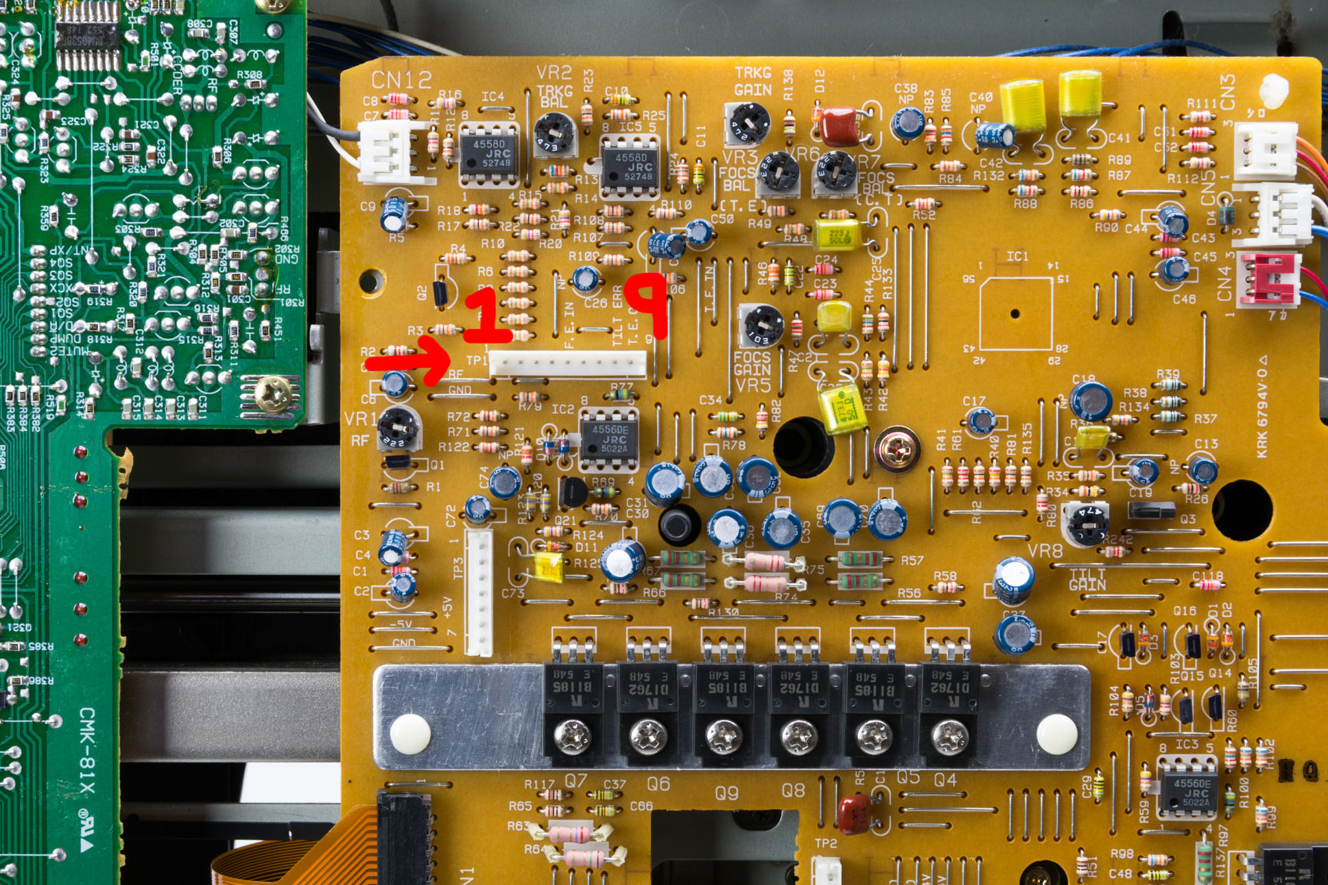 The direct RF output from the player is available on the TP1 (Test Point 1) connector located on the FTSB assembly. This is a male JST EH series 2.5mm 9-pole connector and has the following pin out: