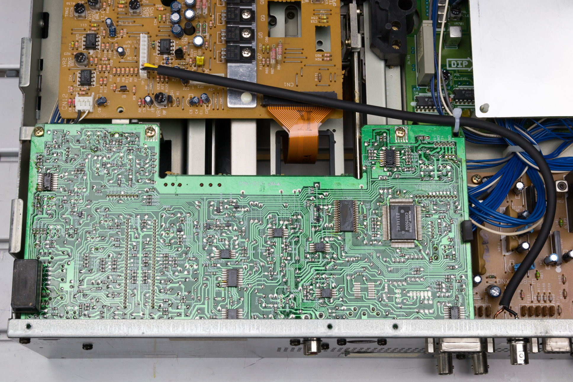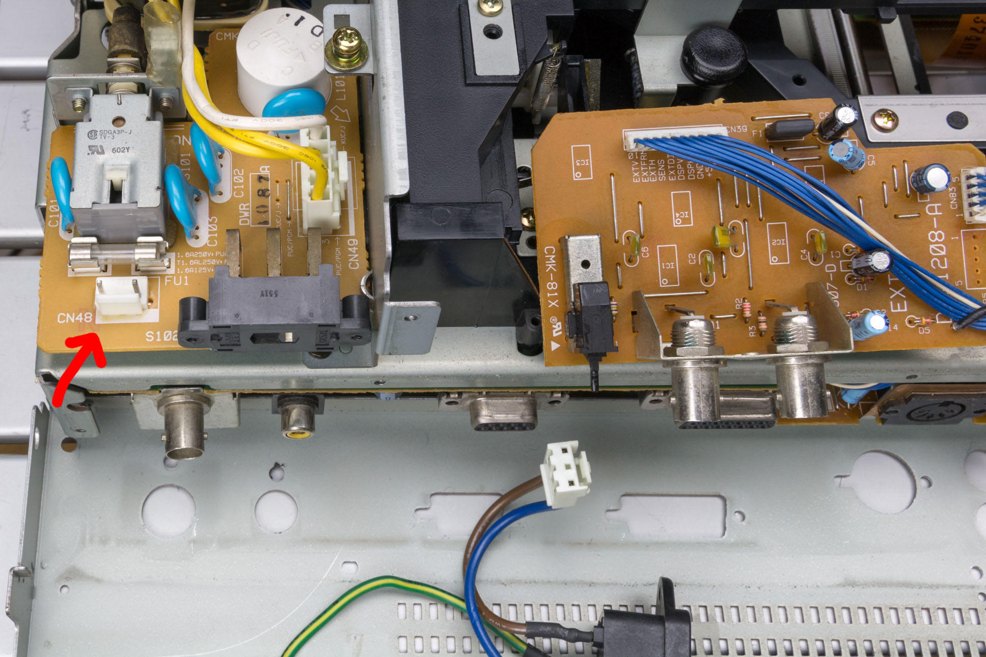 Finally remove the mains connector from CN48 and the back panel will become free of the player’s frame and can be removed: