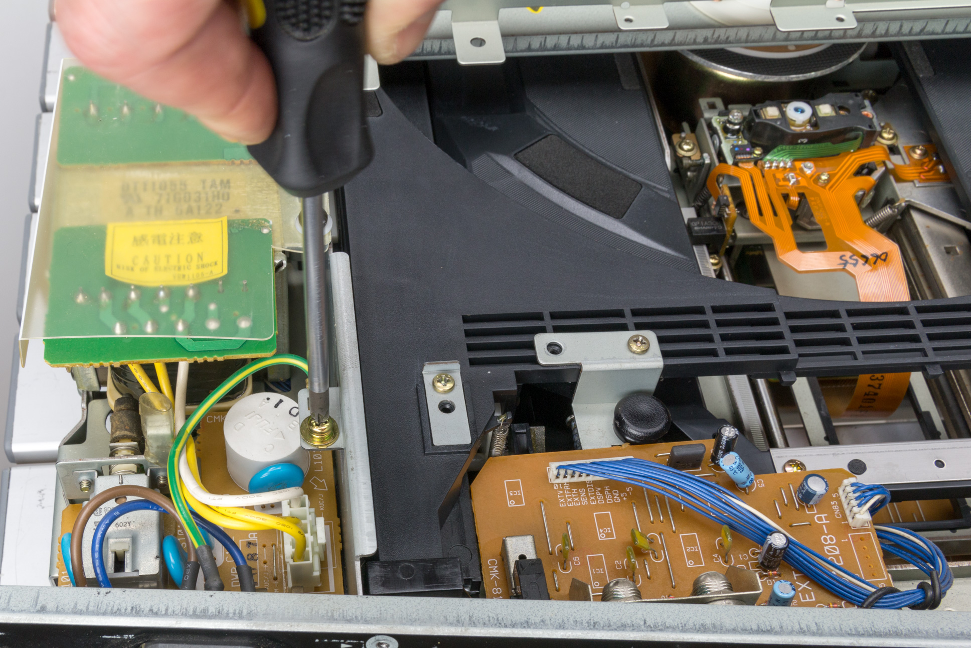 Now reassemble the back panel on to the player ensuring that all the different screw types are put back in the correct places.