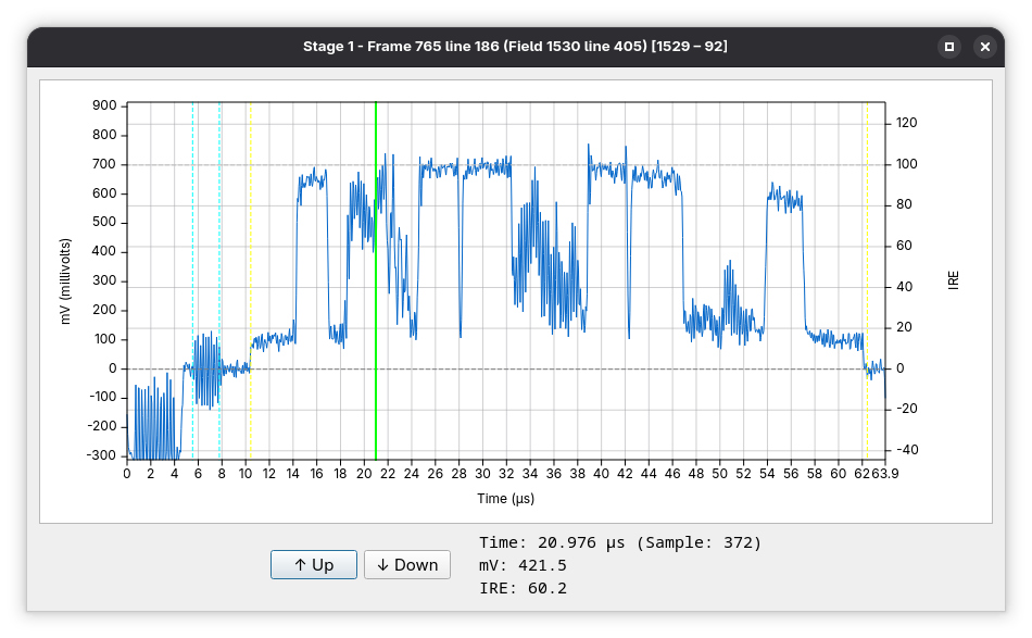 The Line-scope is primarily intended for low-level signal analysis, making it possible to inspect timing, levels, noise, burst structure, and dropout behaviour with precision that is not possible from image-based preview alone.